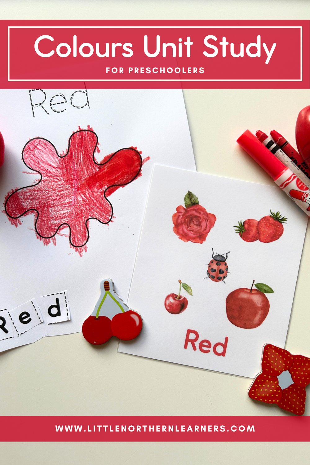 In this post, I'll be sharing how we have implemented a colours unit study using our Colours Preschool Starter Pack at home. We used this study at ages 3 and 5, and I found this to be a perfect age range! For my three-year-old, we focused more on identifying colours and practicing fine motor skills. For my five-year-old, the focus was on reading colour words, reinforcing letter sounds, printing practice, and problem-solving strategies.