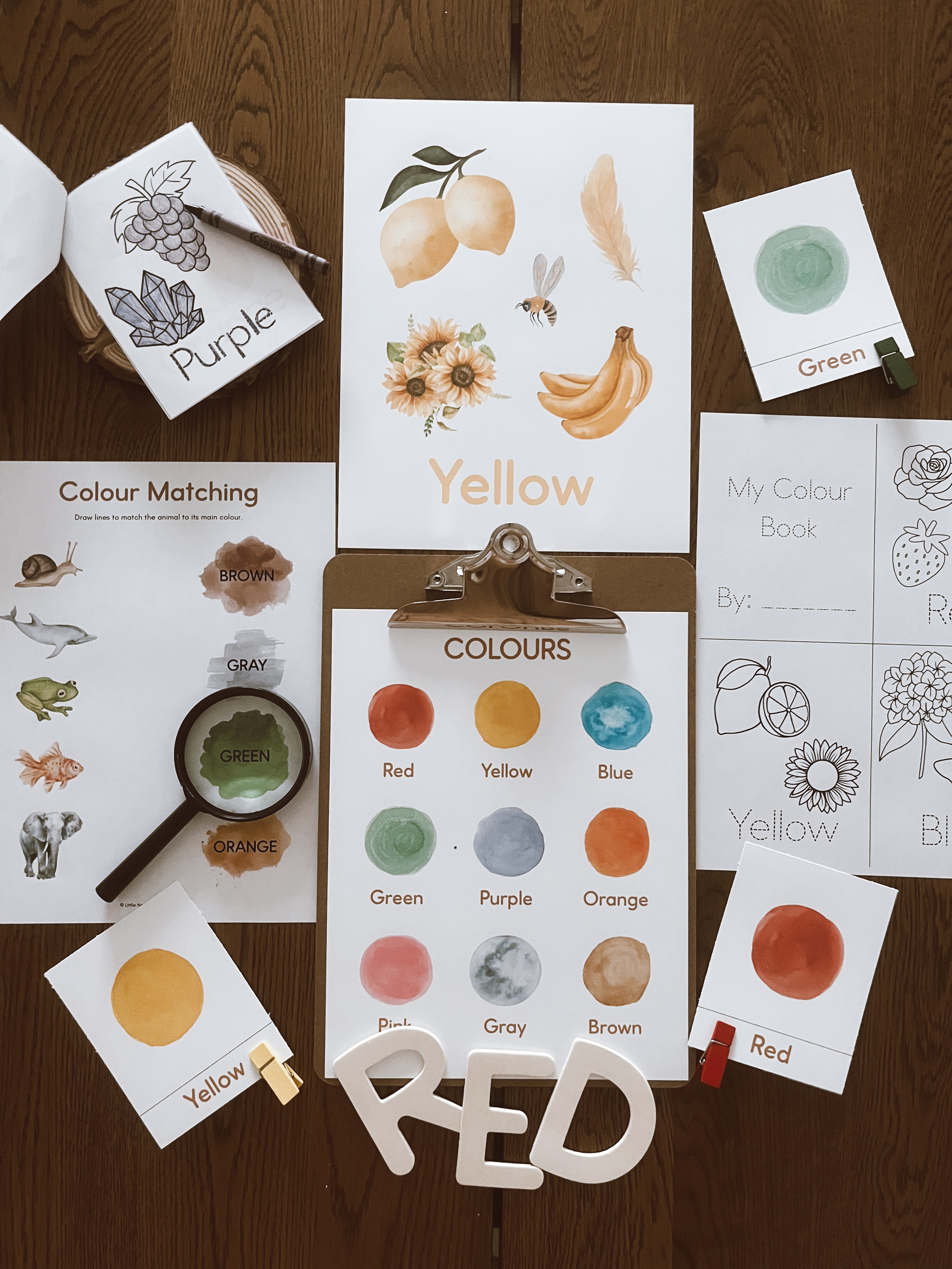 I skipped the flash cards for this one, as I felt the posters were enough, but flash cards can be a great tool for some kids - and if your child is ready, the bottom section can be removed so your child can practice matching the colour picture to the colour word!