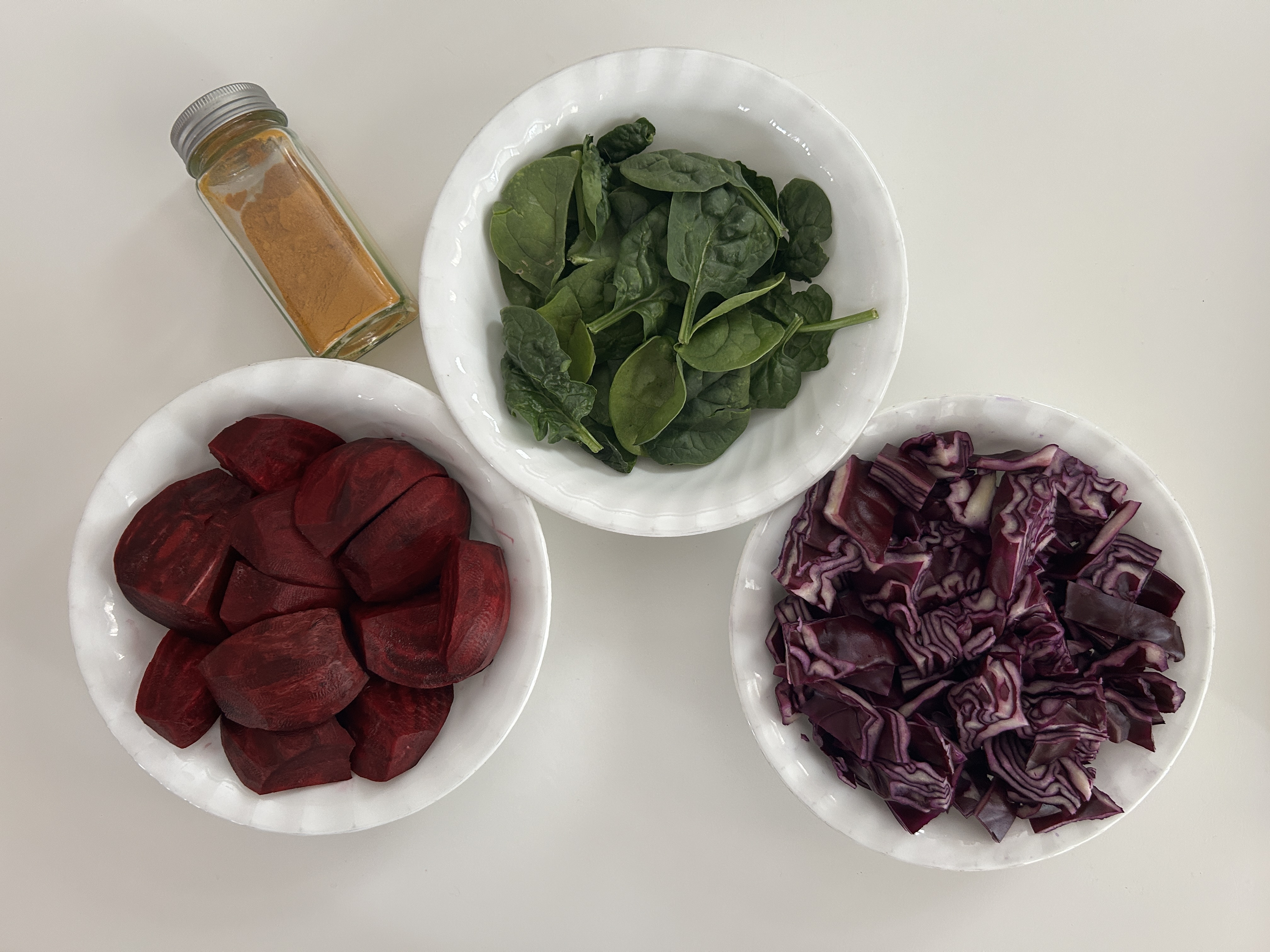 Note: Save your ingredients so they don't go to waste! Boiled cabbage can be fried and eaten as a side dish for dinner. Boiled beets can be eaten cold or rewarmed if soft enough. Boiled spinach and beets can also pureed and frozen into small portions for baby food or added to smoothies.