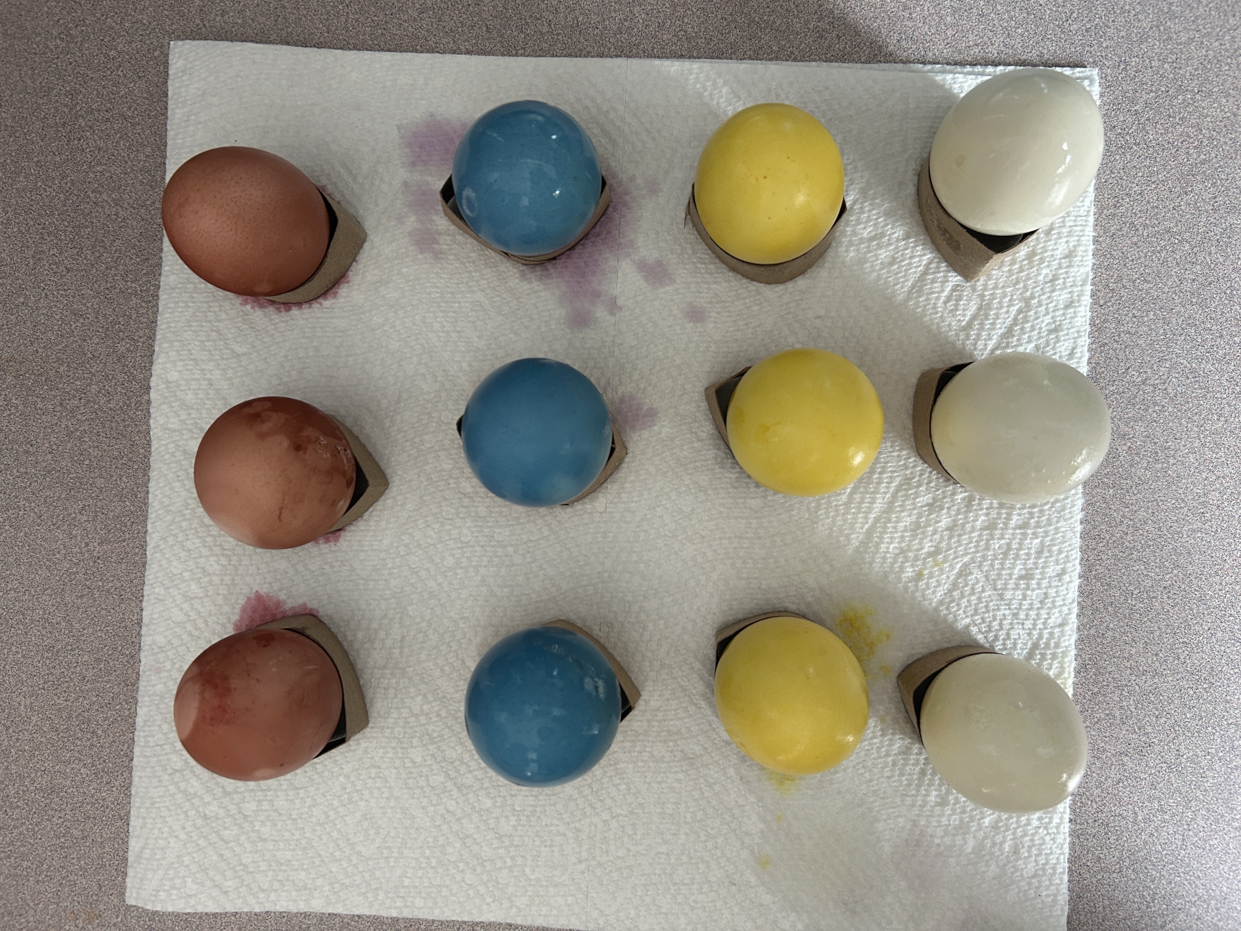Optional: Cut the cardboard tube from a paper towel roll into rings. Use these rings to hold the eggs as they dry (see step 6!)