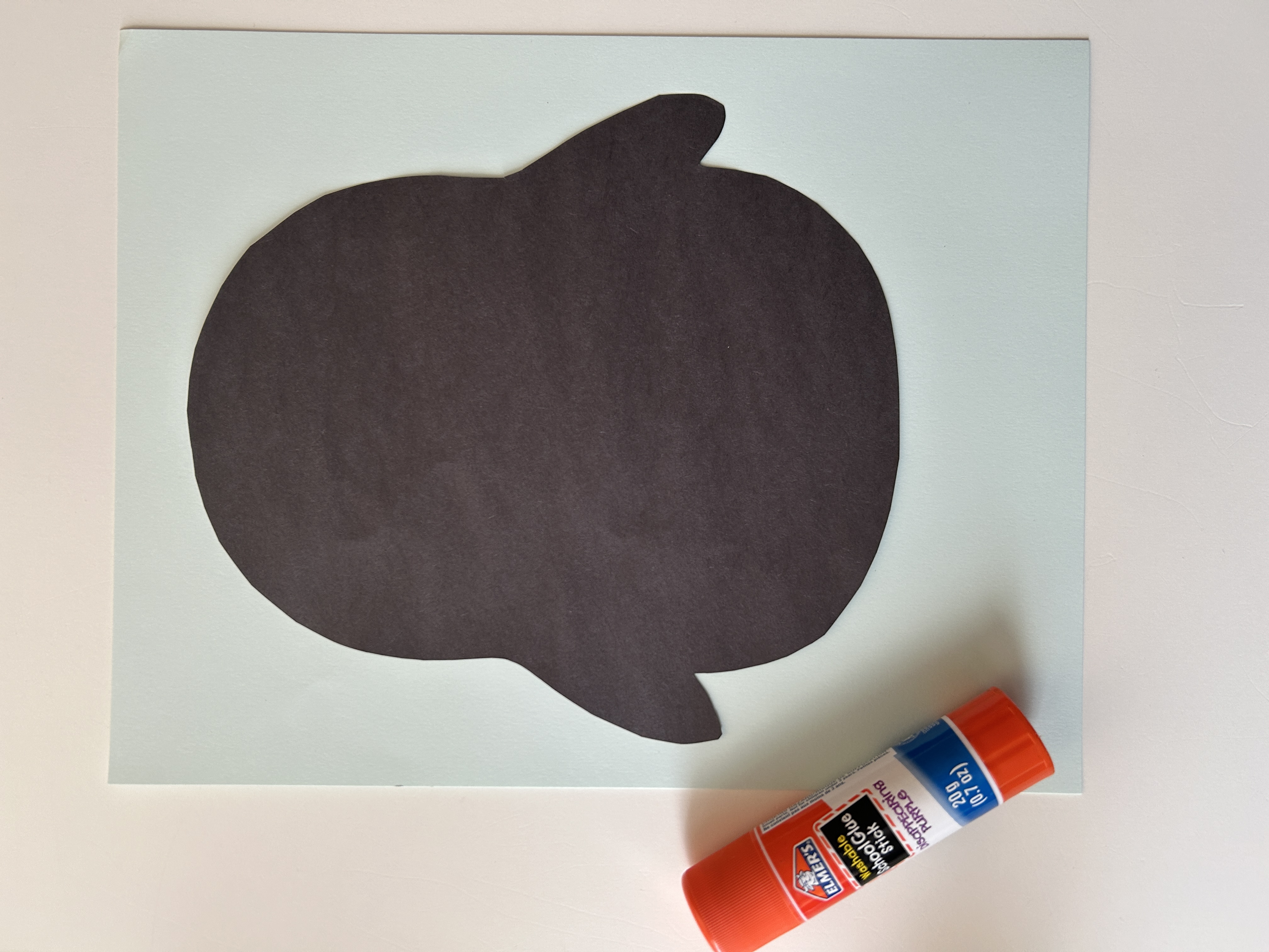 2. Glue: Glue the black penguin outline onto the background paper you have chosen.
